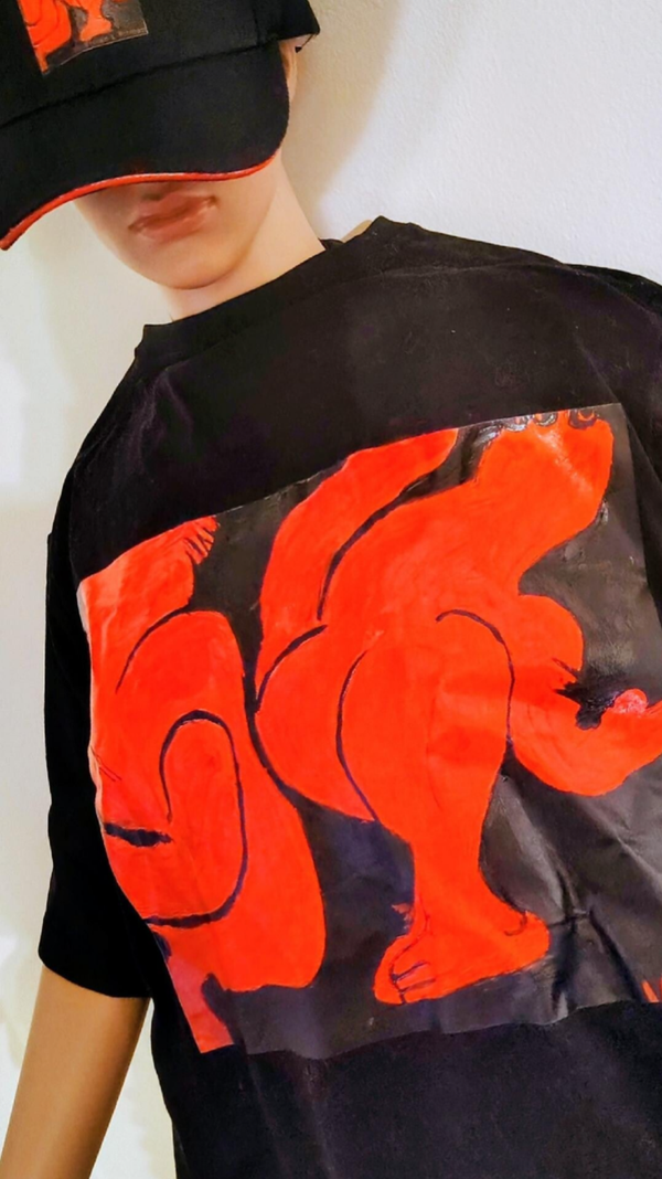 A red and black tee shirt size xx large set with the matching hat.This is a image of my artwork Levende Designs.