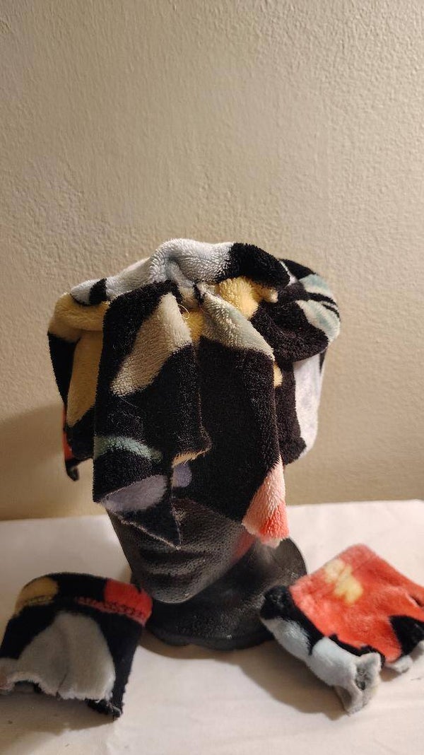 A plush flowered hat size medium unsex hat an oringal,has matching fabric braclets,twenty two inches aroundthe crown.